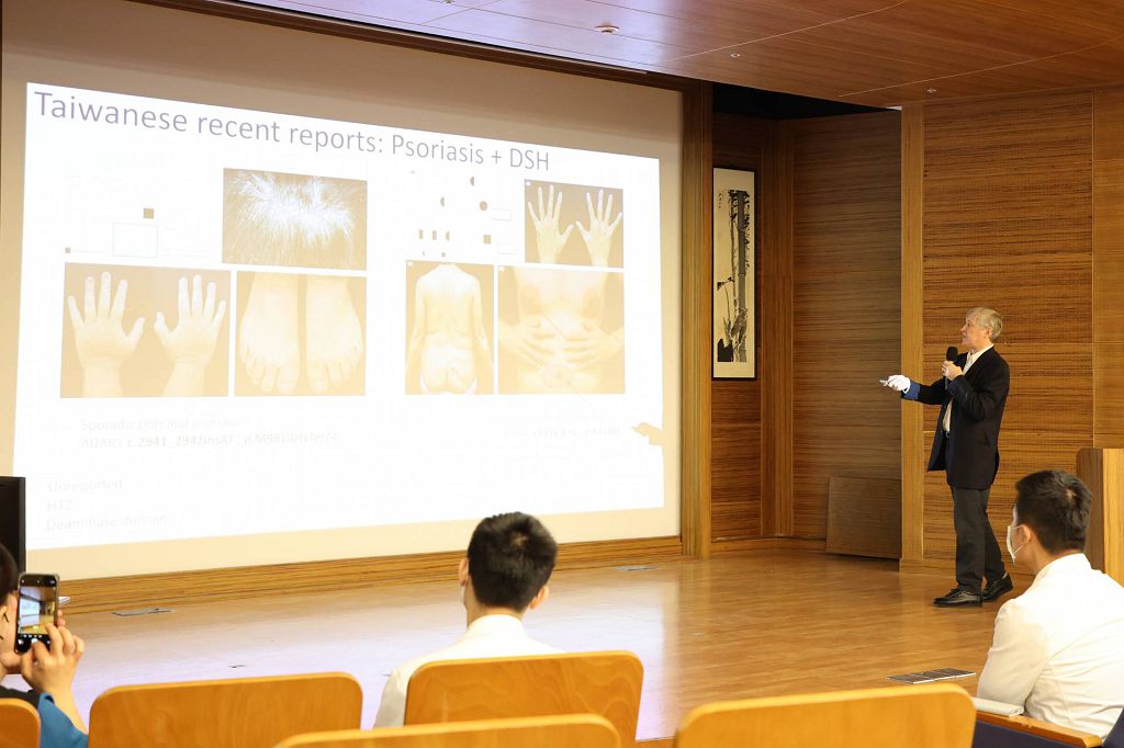 花蓮慈濟醫院皮膚部是東部皮膚醫療的重鎮,也是偏鄉皮膚專科人才培育的搖籃。皮膚部主任張中興教授帶領團隊在2021年發表《歐洲皮膚病和性病科學院雜誌》(Journal of the European Academy of Dermatology and Venereology,JEADV)的論文,首先證實ADAR1單一基因突變在乾癬致病機轉上扮演重要的角色;並受到法國巴黎聖路易斯大學醫院皮膚科教授、國際乾癬醫學會理事長Hervé Bachelez的關注,雙方進而開啟國際合作研究。Bachelez教授11月10日首次訪臺灣並於花蓮慈院分享他對乾癬精準治療的展望與最新研究。