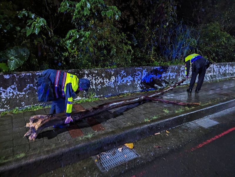警員刁浩軒、陳鴻傑及實務訓練生蕭慶祐等人,為防止事故發生及保障民眾行車安全,立即下車合力以徒手方式,先把該路樹移置到路旁安全位置,並協助通報基市府都發處公園科人員到場,進行後續處理,並未造成人車意外,路過民眾對警方能及時排除障礙,表示讚賞。