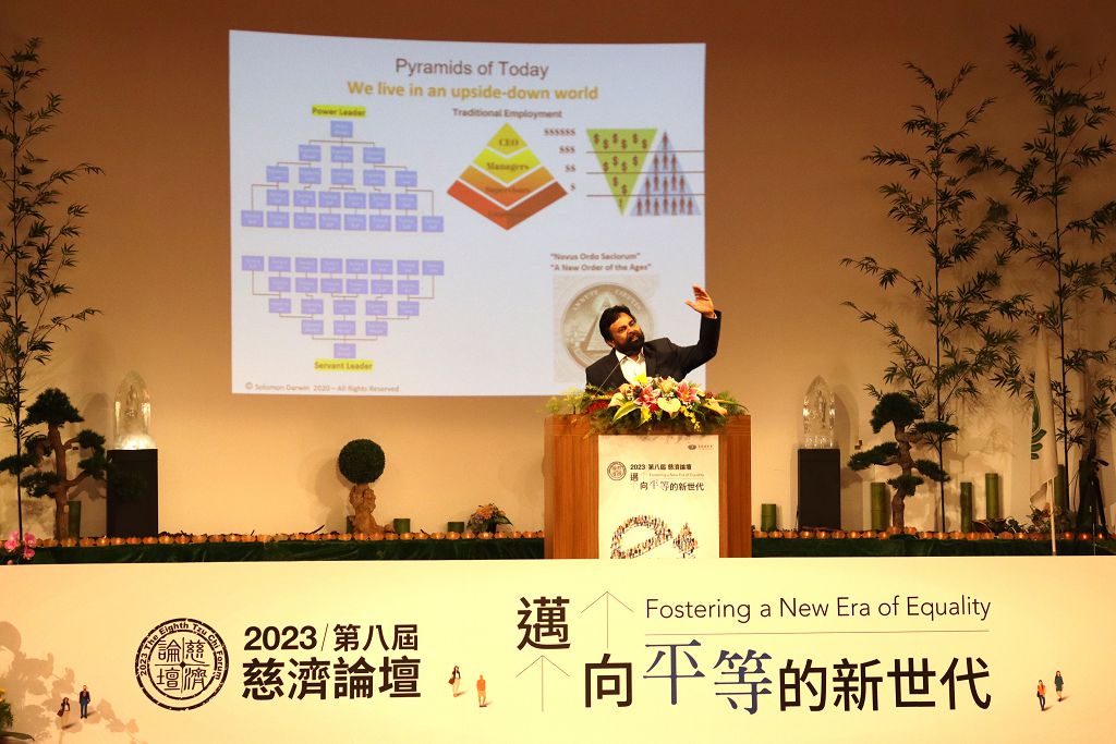 世界當前動盪不安,俄烏戰火未熄、以巴衝突又起、各國民生物價不斷攀升、氣候災難在各地頻傳,全球面臨人禍與天災威脅的同時,來自環境與制度的缺陷,越來越加深弱者所承受的苦難、加劇與文明背道而馳的不平等鴻溝。慈濟基金會表示,與會學者專家,皆來自各領域之翹楚,其中兩位尤受矚目,一位是國際知名Garwood企業創新中心執行董事所羅門.達爾文(Solomon.Darwin),他的父母從印度移居美國,因其種姓制度的成長背景,長期關注印度社會的貧窮問題,並在印度創設醫院,回饋自己的同胞。