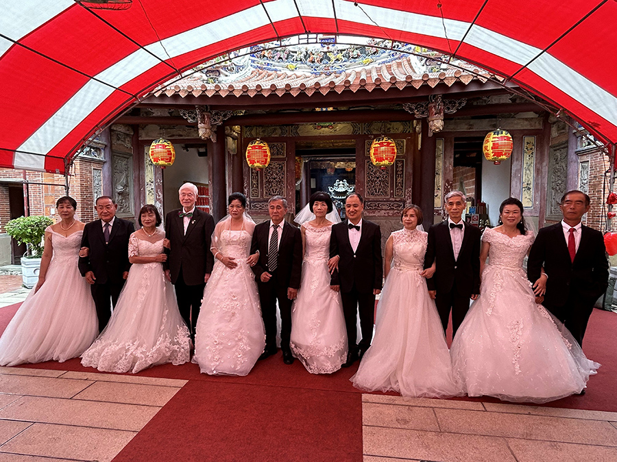 圖說2:大甲區市定古蹟「文昌祠」舉辦「幸福520 銀色婚紗夢」活動,阿公、阿嬤走上紅毯,重憶年輕時光,度過最浪漫的520。(記者陳榮昌攝)