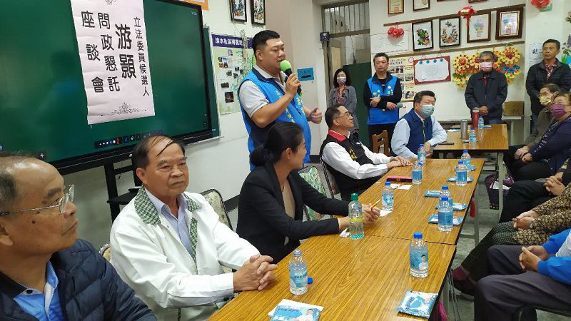 游顥又說,國民黨在立法院是在野黨,所以必須要在立法院監督,要能言、敢戰,特別是竹山鹿谷地區從前立委張明雄後,到現在20年都沒有立委,應該要有人願意出來;畢竟「在同一選區服務民眾,無所謂落跑問題,選上立委,更可以中央角度照顧地方支持的選民」,尤其是自己的優勢就是年輕,目前40歲的他,並曾在立法院擔任過法案主任,與立法院副院長洪秀柱的辦公室主任等等,懇託各位鄉親支持游顥,將游顥送進立法院,繼續服務大家。