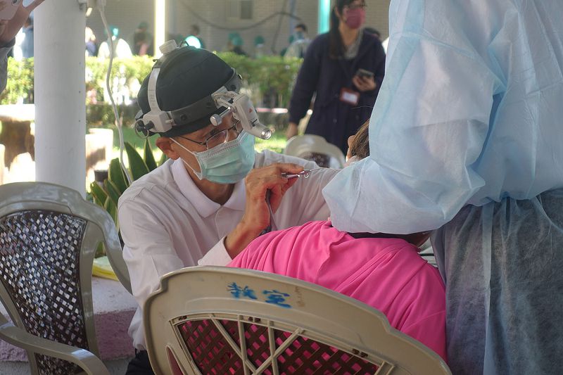 高雄慈濟人醫會蔡政道醫師一早從高雄搭火車前來,平時自己開診所的他,覺得參加義診是一件很有意義的事情。蔡政道表示,平時在診間治療時要瞻前顧後,在這裡有團隊一起投入,讓我們沒有後顧之憂,只需要做治療的事就好,義診能讓他充滿熱情、歡喜心。