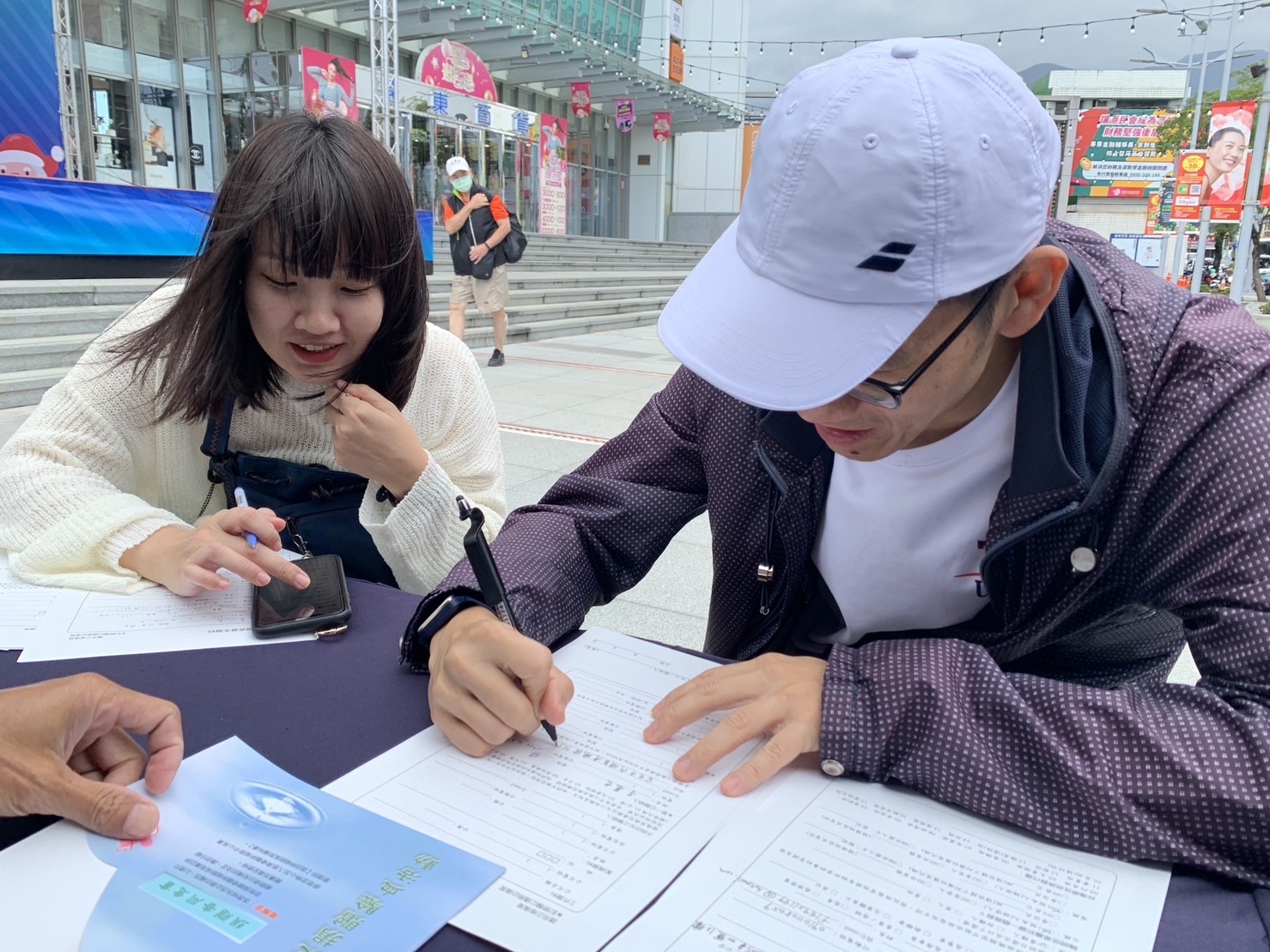 從台北前來花蓮參加路跑的李先生跟女友才結束21公里半馬的賽程,在美崙田徑場球池配配看的遊戲中,感受到病人等待配對移植的不容易,特別在返回台北之前,趕往花蓮遠東百貨參加二信銀行支持舉辨的驗血建檔活動。李先生說知道血液疾病患者等待移植,渴望重生的企盼,剛好遇上宣導與建檔的機會,希望自己和女友這個小小的動作,可以幫助到一個人。