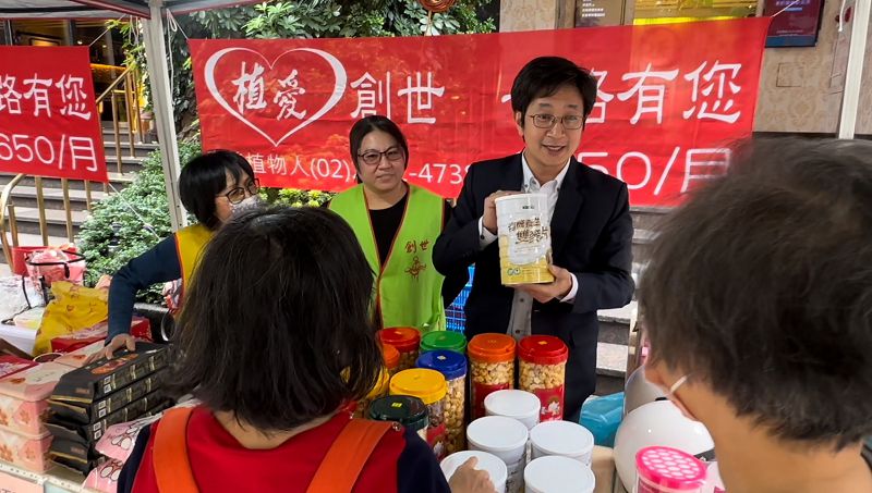 【記者張毅基隆報導】創世基金會基隆院二十一日中午,在北都大飯店前舉辦愛心義賣活動,並宣傳第二十屆創世基隆院「一路有您、慈善餐會」,愛心義賣活動邀請立委員蔡適應、北都大飯店總經理林大永、經理董家宜,現場協助愛心義賣,立委蔡適應現場立即捐助慈善餐會二桌、拋磚引玉,希望更多社會善心人士踴躍捐款,來幫助清寒植物人安養。