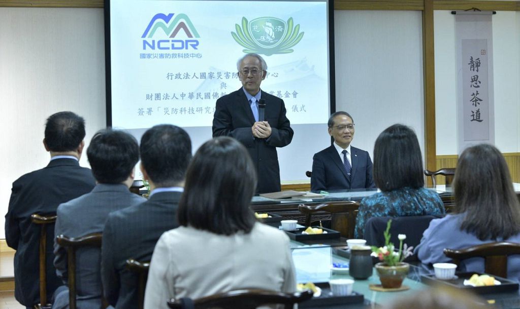 慈濟基金會與國家災害防救科技中心11月21日上午在新店靜思堂簽約共善合作。