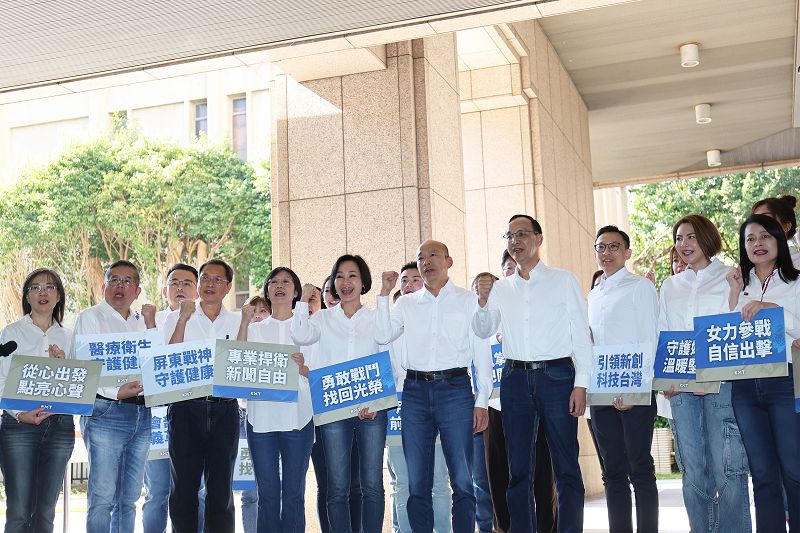 國民黨主席朱立倫、國民黨不分區排名第一的韓國瑜,23日下午率國民黨不分區立委、國民黨智庫執行長柯志恩、區塊鏈專家葛如鈞、不孕症權威陳菁徽等人,前往中選會進行登記。