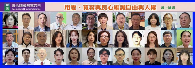 【本報綜合報導】1995年11月16日聯合國教科文組織通過《寬容原則宣言》,並將這天訂為「國際寬容日」,旨在提醒大眾對於不寬容的現象所造成的危險要有所認知。為此聯合國NGO世界公民總會、良心時代運動網站、太極門氣功養生學會等單位共同舉辦「用愛、寬容與良心 維護自由與人權」線上論壇,邀請各領域專家學者提出專業的見解與分享。