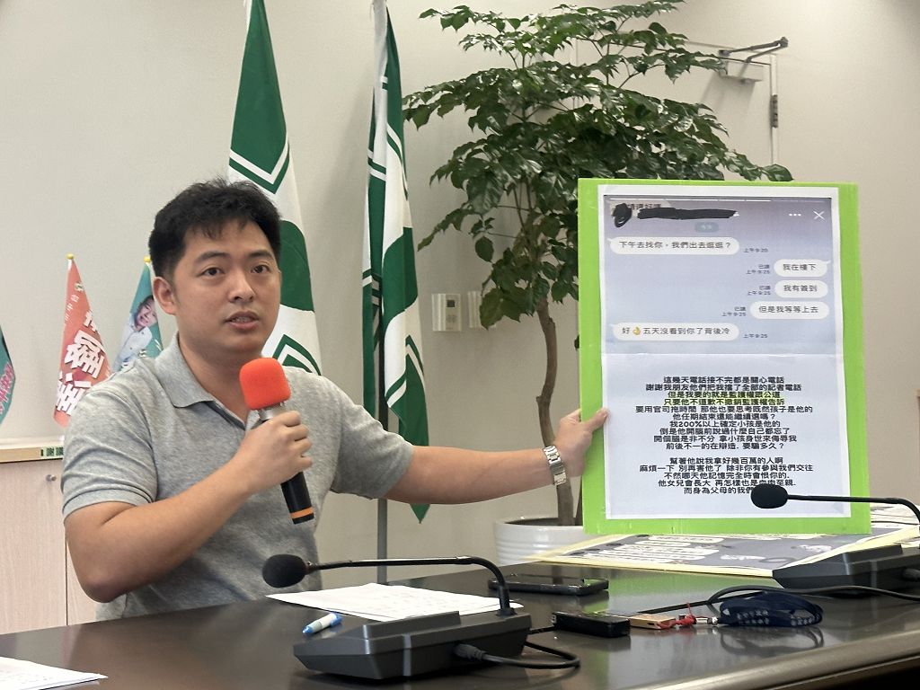 【記者林獻元台中報導】針對民進黨及賴清德重要輔選幹部遭爆「棄養子女」、「外遇劈腿」事件,當事人C女向民進黨黨公職求助被冷落拒接一事,台中立委候選人羅廷瑋、林家興及蔡壁如日前召開記者會踢爆相關案情,希望幫單親媽媽C女伸張正義,30日卻遭到男方民進黨台中太平區議員蔡耀頡揚言提告,羅廷瑋、林家興及蔡壁如回應表示,嚴正拒絕民進黨「性LINE台灣」傷害婦幼、顛倒是非的操作,受理陳情聲援受害女性及維護孩子權益是民代天職,更是基本人性,呼籲民進黨主席賴清德應出面回應,究竟民進黨對於婦幼的價值是什麼?難道真的是始亂終棄?