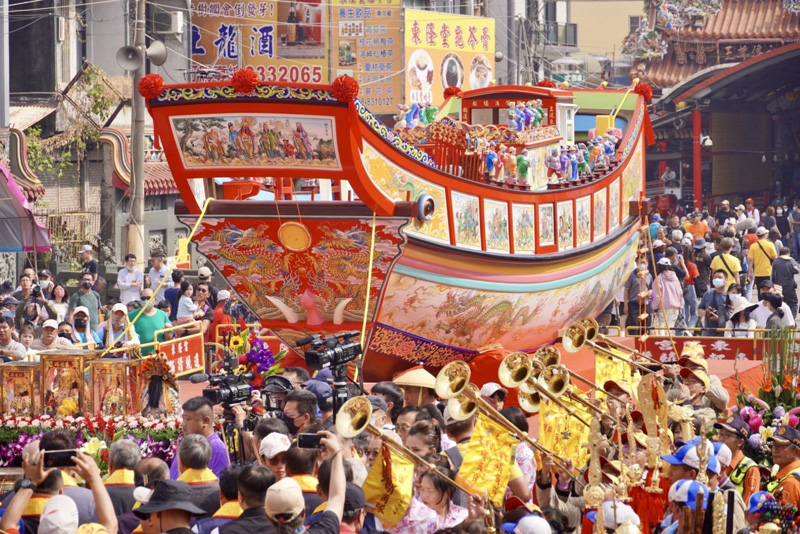 大灑吉祥糖果雨與信眾分享喜悅 東港溫王爺、大甲媽「天后天王」相見歡 雙王船見證百年宗教盛事 今返回台中