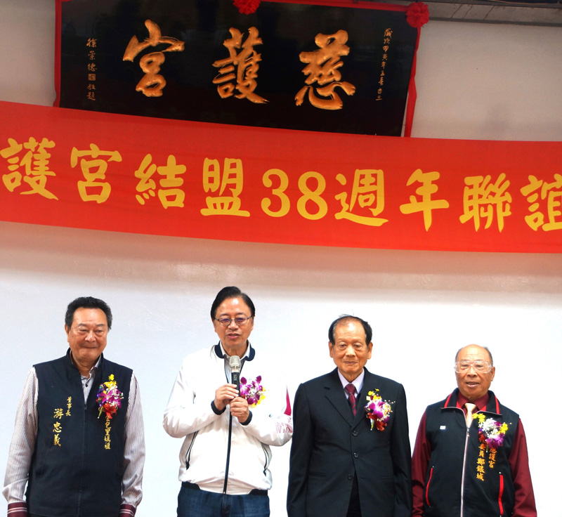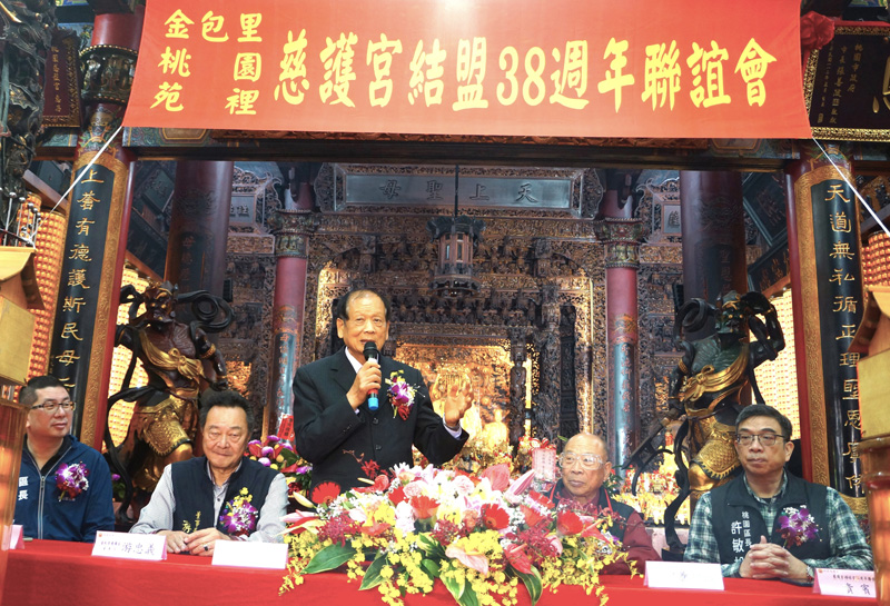 、龜山區長張嘉平、桃園慈護宮主委吳正宗與幹部、金包里慈護宮董事長游忠義率團隊、苑裡慈護宮主委鄭銀城率團隊等人,出席「桃園慈護宮舉辦姊妹宮結盟38週年慶餐聯誼會」。