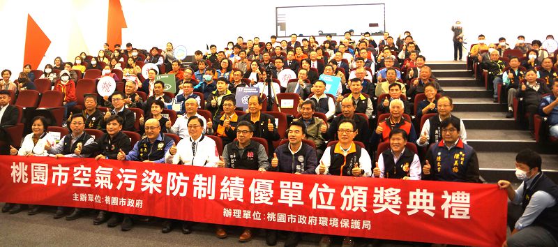 張善政說明,此次頒獎典禮得獎團體皆對於空污減量有卓越貢獻,其中固定源廠家透過自主能源轉型,減少生煤及重油使用,改燃低污染性燃料達成能源轉型,營建工地如:三星物產營造,配合市府透過空品感測器結合AI影像辨識智能灑水系統,並主動認養周邊道路。在宗教團體部分,如:仁海宮、普濟堂、龍元宮、景福宮及慈護宮,宮廟慶典活動全程採用環保祭祀,並設置以米帶金示範機,減少紙錢使用。在市府推動的空氣品質淨化區中,各單位積極認養並打造為親子皆宜之活動地點:;在移動源的管制中,各車廠皆配合市府執行化措施並落實保檢合一之制度。其中與市民息息相關之室內空氣品質場所,列管單位除積極爭取標章落實室空標準外,並針對非列管醫療院所如桃園長庚紀念醫院皆主動申請,以上團體均值得社會給予肯定!