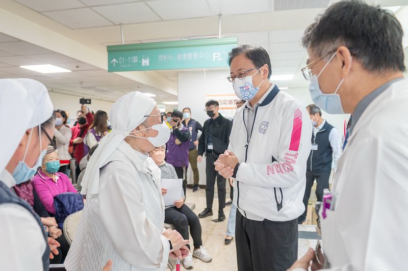 桃園市長張善政前往桃園區沙爾德聖保祿感謝該院醫療人員的辛勞。