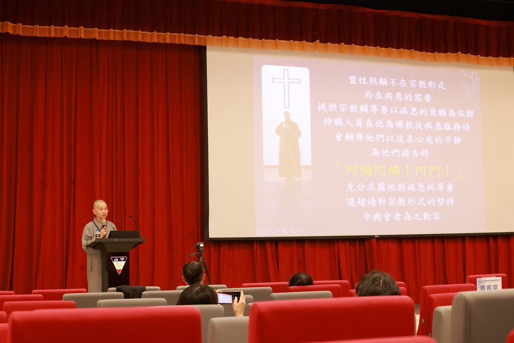 「臨終患者其實是用生命病苦在示現,也用生命讓我們知道生老病苦,愛恨別離,無處不在。但是它卻能夠激發我們更大的愛,匯聚更多人的愛心,共同在病房中去陪伴,去關懷。也激勵我們、鍛煉我們成為一個個努力,真的能夠去愛人的能力。」