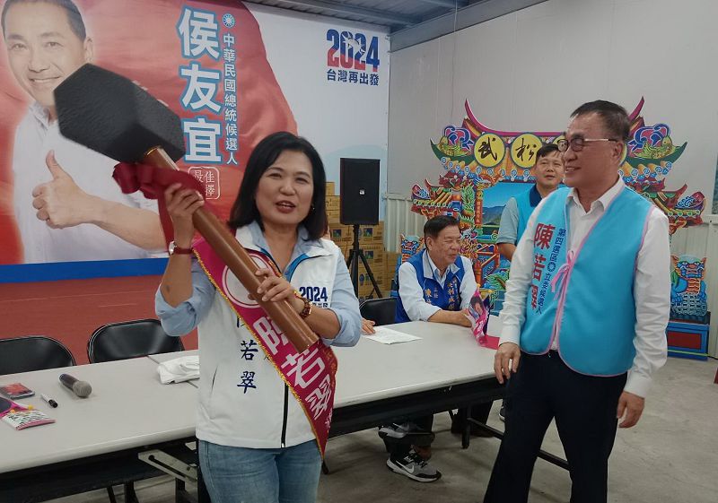【記者于欽智高雄報導】2024選舉投票日迫近,台北市副市長李四川日前專程南下高雄,前往仁武為第4選區立委候選人陳若翠加油打氣,並陪同掃街拜票;陳若翠除接受李四川頒授的鐵鎚,代表將為地方建設打拼外,也宣布正式成立抓鬼(賄)大隊,誓言還給地方一個公平、公正的選舉。