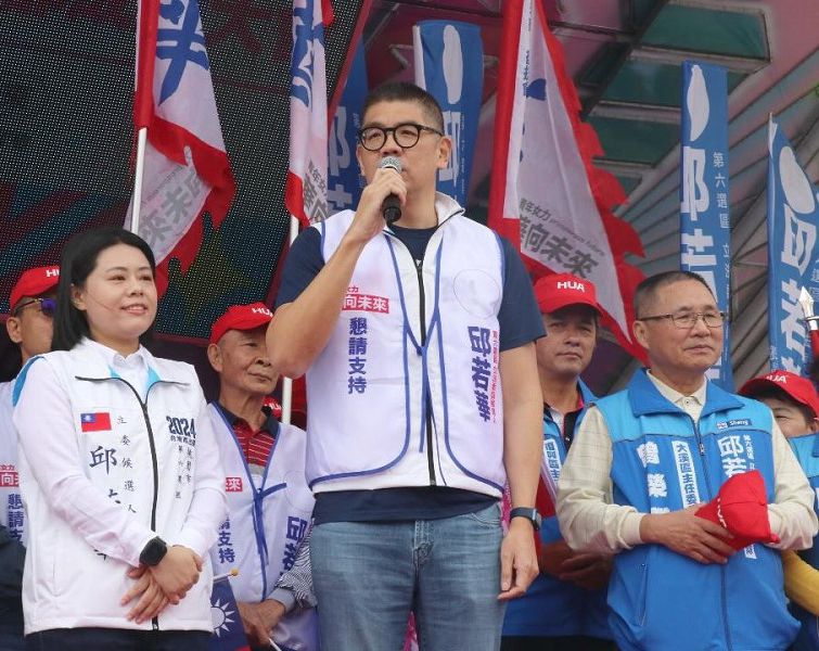 國民黨副主席連勝文(中)為立委參選人邱若華站台助講。(記者鍾陽正攝)