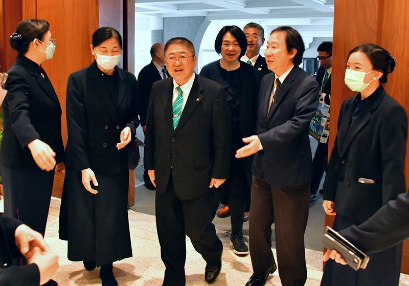 日本岩手縣宮古市長山本正德走進台北關渡靜思堂,親切用「您好、您好」的中文跟大家打招呼,臉上堆滿親切的笑容。慈濟傳播人文志業基金會研發長張尊昱代表同仁及志工,歡迎巿長蒞臨關渡靜思堂。