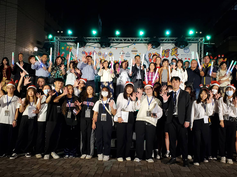 輔英科技大學為迎接聖誕節及新年到來,特於13日晚上舉辦「聖誕佳音.照亮輔英」晚會,會場高4米多的聖誕樹,是行政人員與學生首度合作手作,且於樹上掛滿祈福小卡,再搭配造型卡哇伊的「聖誕老公公」充氣公仔,讓校園洋溢濃濃的祈福感恩氛圍,活動現場由校長林惠賢主持點燈儀式,再由學生社團搭配安地斯樂團載歌載舞,嗨翻全場;林惠賢表示,即將邁入新的一年,回首以往有許多值得謹記及感恩的人事物,期盼全體教職員工生都平平安安,順順利利,用歡欣鼓舞的心情迎接新的一年、新的挑戰,同時祈求國泰民安、風調雨順。(圖文:記者于欽智)