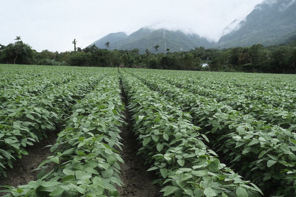 十月下旬,農曆霜降剛過,花蓮白天天氣燠熱,但日頭已少了夏日的張狂,氣溫明顯溫和許多。精舍師父種的有機黃豆、黑豆田,在雲霧繚繞的中央山脈與太平洋環抱下,吸收著大山的水氣和太平洋的暖流;一畦畦的豆苗已抽高,正陸續開著淡紫色小花,接著將漸漸結成一個個飽滿的豆莢。