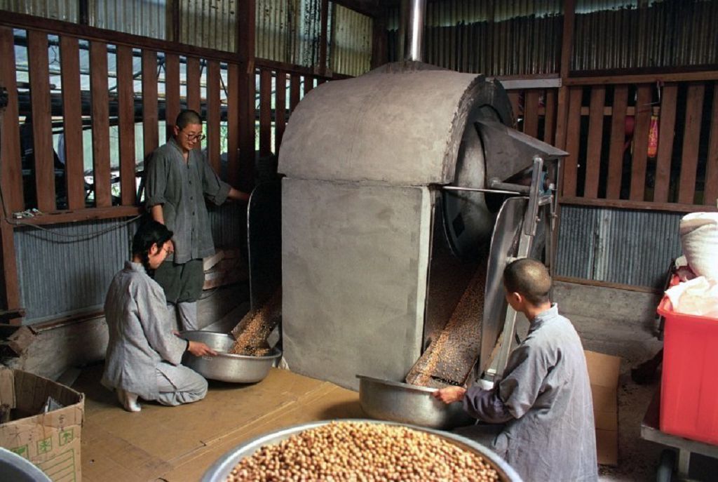 「若只聽法,不用法,必生煩惱。」上人曾說:「心輪轉,法輪才會轉。自轉法輪,聞法自解,進而悟入佛之知見。」若只是將法放在心中,不知於人群中應用、覺悟法,讓法停滯不前,這樣的法水如同一灘死水,聽得再多也是枉然。就像炒豆機的軸心停止了,沒有及時轉出熟豆,在一百一十度高溫下,不到一分鐘,豆子便燒焦,無法製成五穀粉。如此,一切的努力都前功盡棄。