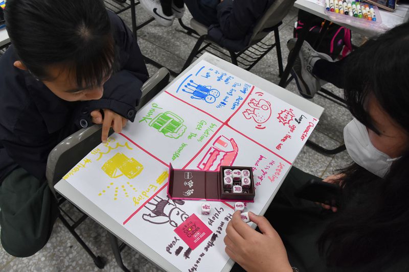 公然在上課時間讀繪本、擲骰子、編故事、畫六宮格,甚至,玩桌遊!沒錯!這就是慈濟科技大學的必修英文課!不論是搭配英文課文,找出桌遊答案,還是Story Cubes(故事骰),讓大家按照骰子上的圖案,串接成一個故事。只見學生發揮無限想像力,天馬行空的亂編一通,只要敢講出口,通通都算加分!