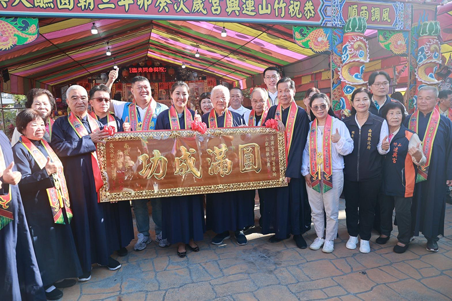 【記者陳良安竹山報導】竹山鎮連興宮為延續丁酉年(民國106年)竹山鎮60年全鎮聯合建醮後之圓滿科儀,於112年國曆12月16至18日連續三天,辦理竹山鎮8里(竹山里、中正里、中山里、雲林里、竹圍里、桂林里、下坪里、??里)聯合圓醮大典,16日上午8時舉行引鼓入醮科儀,縣長許淑華出席主持開香儀式,並致贈匾額預祝圓醮大典圓滿成功;縣議員游顥、蔡孟娥、陳玉鈴、吳瑞芳議員服務處特助林晏生、竹山鎮長陳東睦及多位竹山鎮民代表都到場參與,過程莊嚴隆重。