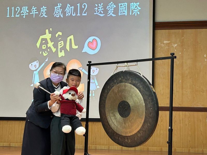 來自土耳其滿納海的「小海」與校長一同敲囉,感謝大家護持滿納海新校舍的興建。