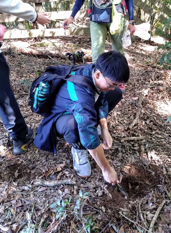 高一和氣賴傳宇,幫忙揹遺棄山林的保溫瓶下山,學會了使用打火機點燃蜘蛛爐,跟東藤枝山三角點拍照,學習認識山頭,實際操作貓鏟練習挖貓坑,他表示:「這次的活動讓我學到許多登山的知識,也讓我們在這堂多元選修的課程學的知識可以學以致用,感謝學校給我們這個機會到野外學習。」