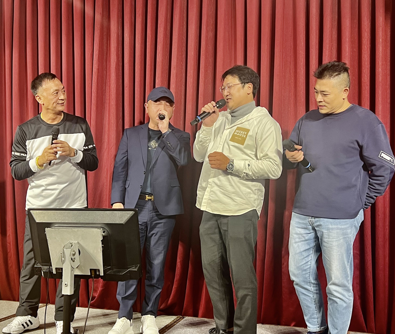 劉俊嶺感謝母親和好友們及工作伙伴和他一起過生日,又發宏願將再捐款做公益,獲得滿堂彩,齊唱生日快樂歌。