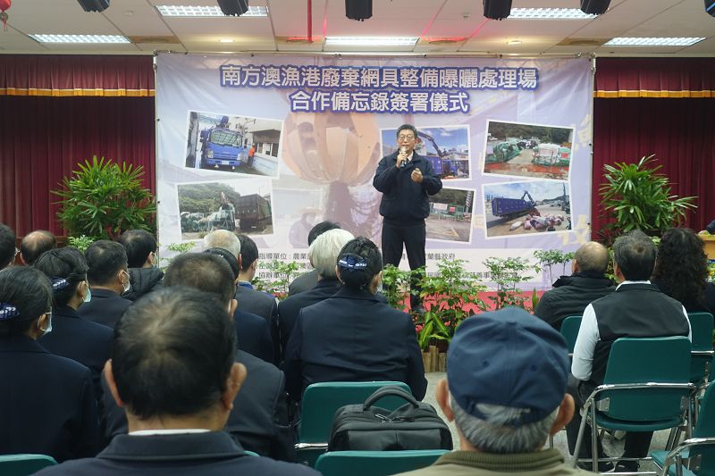 為共同維護海洋資源保育,蘇澳區漁會、邦泰複合材料股份有限公司與慈濟慈善事業基金會12月20日公開簽署「南方澳漁港廢棄網具整備曝曬處理場計劃」合作備忘錄,由蘇澳區漁會負責爭取場域、設備建置、邦泰複合材料股份有限公司負責材質化驗、分類,將可回收部分協尋回收廠商,慈濟慈善事業基金會負責邀約志工針對廢棄漁網處理前、後之分類、剪裁、打包等,讓廢棄網具回收再生,達到資源永續利用。