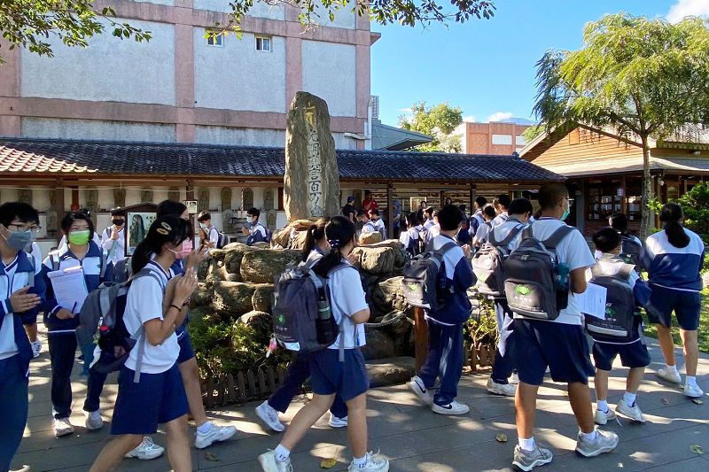 在好客藝術村這邊,學生們在老師的帶領下,閱讀「拓地開村記念碑」,認識日治時代吉野村移民之始,同時前往慶修院,認識百年前吉野村的信仰中心,在這段旅程中,遙想百年前吉安風華。