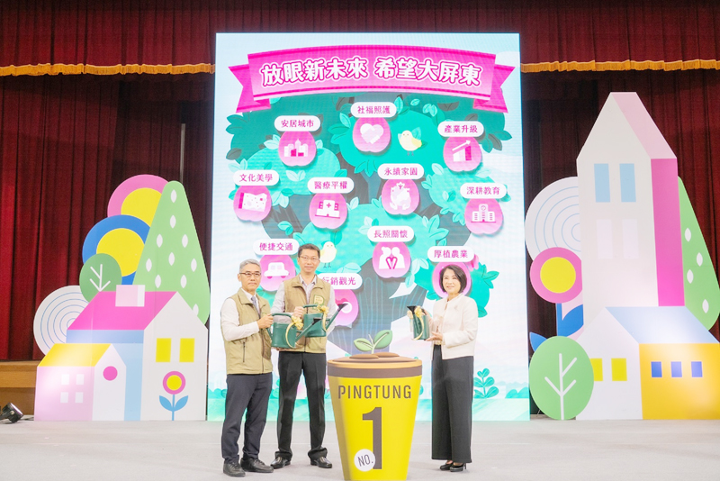屏東多向度」,周縣長強調,她和縣府團隊會努力和時間賽跑,全面啟動、加快速度,帶領屏東前進。