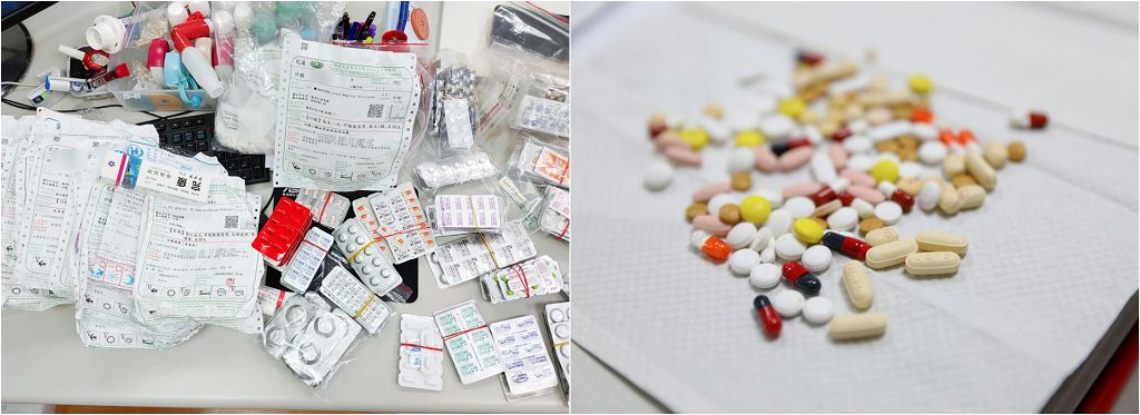 許晉譯主任表示,當時在診間第一次看到陳女士的時候,就發現陳女士感覺很疲倦,精神不是很好,隨身的大袋子裡裝著滿滿的藥物,在個案管理師的協助整理下,發現陳女士包含長期追蹤的慢性病在內,同時在新陳代謝科、腎臟內科、耳鼻喉科、神經內科、神經外科、腸胃內科、腸胃外科、心臟內科、復健科、眼科、皮膚科與中醫科等12個不同科別就醫,當下就決定要幫陳女士進行「藥物健檢」。