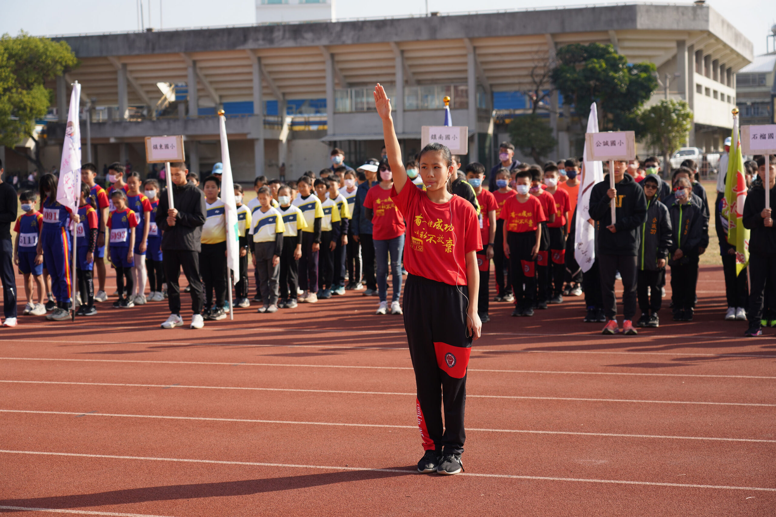 鎮南國小謝依璇同學,代表運動員宣誓。(記者蔡鳳敏攝)