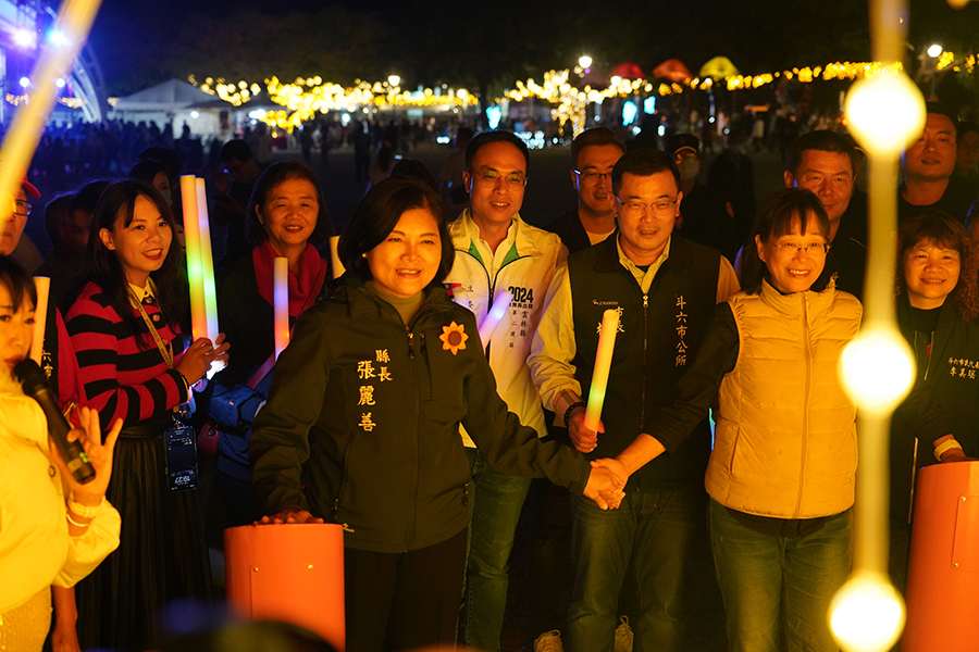 【記者蔡鳳敏雲林報導】斗六市公所晚間在膨鼠森林公園舉辦「龍耀斗六、祥瑞萬家」燈會啟燈暨跨年晚會,縣長張麗善、副縣長謝淑亞應邀出席啟燈儀式,受到民眾熱情歡迎,張縣長除祝福鄉親新年快樂外,也感謝斗六市公所用心舉辦活動,並表示縣府團隊明年會繼續努力,為鄉親建構更好的未來。啟燈儀式包括縣長張麗善、副縣長謝淑亞、新聞處長卓宜姿、肉品市場副總經理邱良閱、縣議員陳永修、市長林聖爵、代表會主席胡克勤、副主席黃尤美及多位代表、里長均到場同歡。