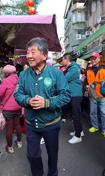 擔任賴蕭台北市競選總部主委的陳時中2日上午現身北市謙和市場,陪同民進黨台北市第3選區(中山、北松山)立委候選人謝佩芬向民眾拜票,台北市黨部主委張茂楠也到場。