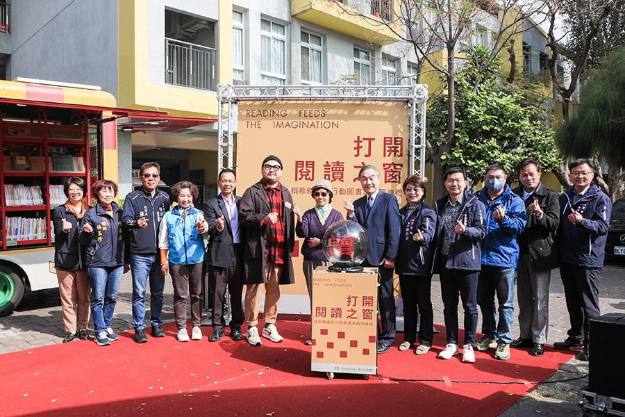 【記者彭勝郎台中報導】台中市第2部太陽能行動圖書車嶄新亮相!由財團法人台中市文英基金會捐贈、屢獲國際獎項的藝術家鄒駿昇設計車體的行動圖書車,規劃至豐原、潭子、大雅、神岡及后里等校,主動將圖書資源送到師生手上,3日在豐原翁子國民小學舉辦啟用典禮,副市長黃國榮表示,以美學與綠能開啟市民閱讀之窗。