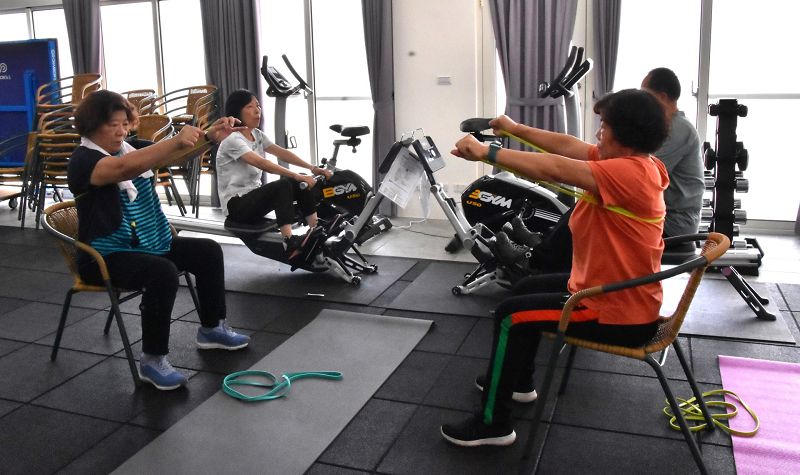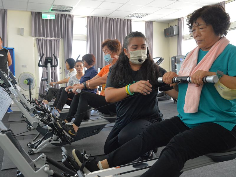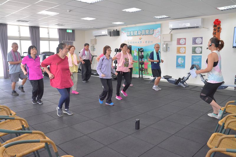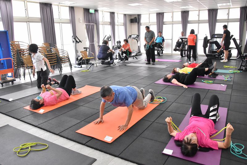 為了避免陷入「肌肉流失加劇→行動力變差→抗拒行動→肌肉流失再加劇」的惡性循環,慈濟科技大學特地選在吉安鄉宮廟附近的活動中心,成立勝安銀髮健身俱樂部。為期12周、共24堂的課程,以增強下肢肌力為目標,共吸引45人報名,平均年紀65歲,其中年紀最長的是80歲、最年輕的46歲,還有5對夫妻檔。