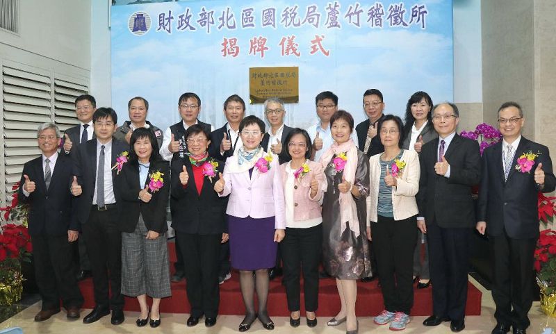 【記者鍾陽正桃園報導】財政部北區國稅局為因應稽徵業務提升,特成立蘆竹稽徵所,日前在總局一樓大廳舉行揭牌典禮,由財政部長莊翠雲、財政資訊中心主任張文熙、政務次長李慶華、賦稅署長宋秀玲、北區國稅局長李怡慧、前局長王秀忠、蔡碧珍、蘆竹稽徵所主任柳李育等人共同進行揭牌儀式。桃市府地方稅務局長姚世昌、大園區長余誌松、蘆竹區長李岳壇、財政部法制處長翁培祐、國產署北區分署桃園辦事處主任陳文彰、桃園市記帳士公會理事長張國強、桃園市記帳及報稅代理人公會理事長范秀嬌等人均出席見證。