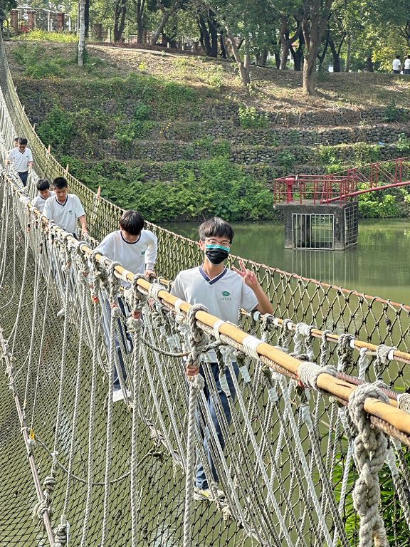 國二和氣陳柏妘同學感受到班級凝聚力的出現,她特別提到:「走雙三索吊橋時,有人因為恐高不敢體驗,卻在同學相互鼓勵下,克服了恐懼。我就是其中的一個,尤其走到一半時,看著下方湖泊距離越高越遠,想放棄的念頭不斷產生,雙腿也不住顫抖,但因為有後面同學的鼓勵,幫助我完成了挑戰。這個活動也讓我體會到同學之間要互信互愛,一起面對困難。」