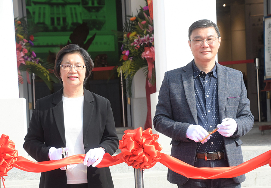 【記者鄭惠珠鹿港報導】鹿港鎮公所於5日在鹿港公會堂辦理「縣定古蹟鹿港公會堂修復及再利用工程完工啟用暨鹿木藝緣展覽開幕典禮」,彰化縣長王惠美、鹿港鎮長許志宏等人與會剪綵並欣賞新春首展。