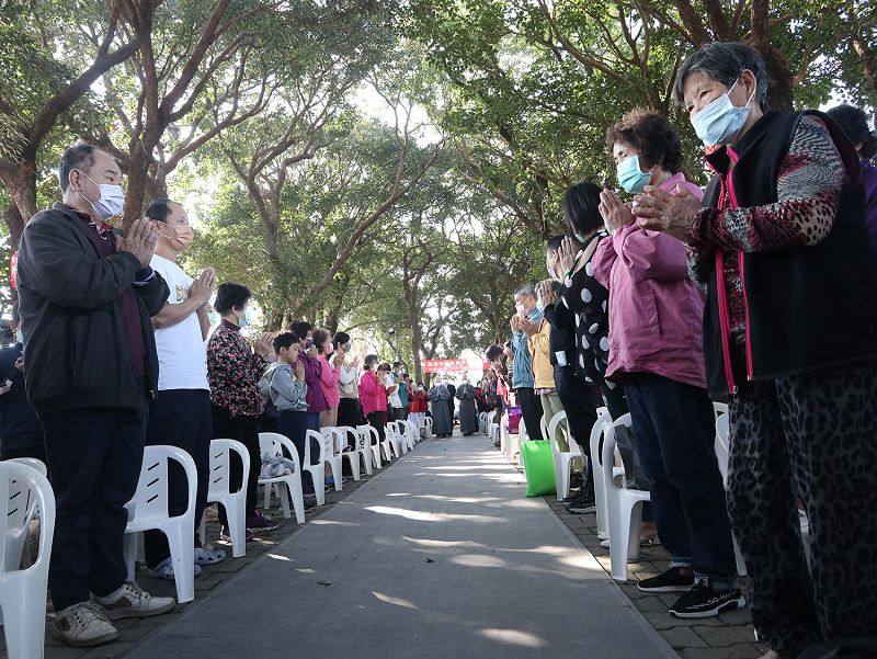 歲末年終,慈濟嘉義太保共修處特別在2023年最後一天,在共修處廣場舉辦露天社區歲末祝福。約400位的社區鄉親們扶老攜幼地到來,有子女帶著長者推輪椅來參加,還有長者在子女的攙扶下拄著拐杖緩緩地步入會場,滿滿的會場坐無虛席。