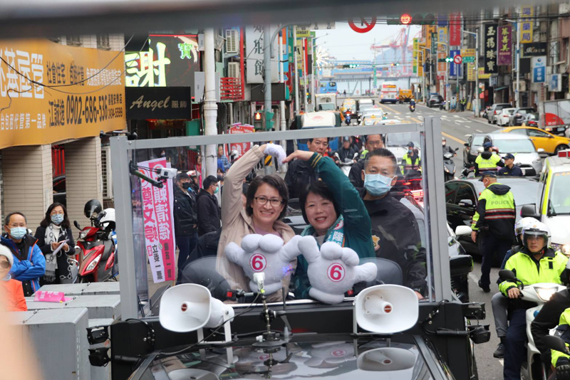 基隆市一場以「團結勝利大會」為名的大型造勢活動,暖場用了舞動彩球開始,帶動唱,擂鼓到技巧取勝的啦啦隊,各有千秋。