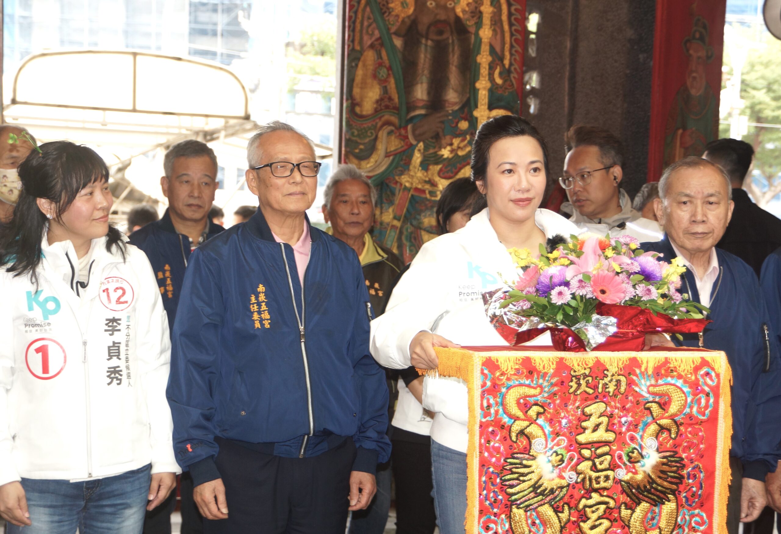 【記者吳惠民桃園報導】1號柯文哲競選總統搭檔副總統候選人吳欣盈,9日上午在其團隊引領下抵達南崁五福宮,該宮主委陳宗賢、總幹事邱進賢及幹部多人歡迎陪同向玄壇元帥參香祈福!期能讓1號總統、副總統候選人柯文哲、吳欣盈能以人民「唯一的選擇」、「一定會贏」贏得大選勝利!