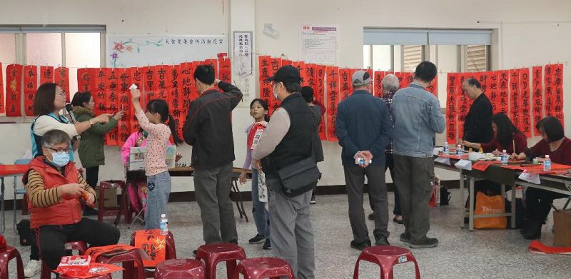 鄭淑霞表示,春節將至,農曆年貼春聯是傳統習俗,既有新年祈福、辟邪的意義,也增添節日的喜氣。里內希望今年能有搭配應景的活動,而書寫春聯是傳統文化,民眾參與力比較高,正好里內剛當選五十年金婚獎的東亞藝術研究會理事長王美美欣然答應要為里民服務,並邀請10位知名書畫家來揮毫相挺,讓民眾感受新春吉祥喜氣。非常感謝東亞藝術研究會的名家辛苦帶給里民快樂,也讓里民可以看到高水準的書畫,讓春聯與以往春聯不同,真正感受到書畫之美與地方文化融合的年節氛圍,真的是物超所值,讓大智里更好。
