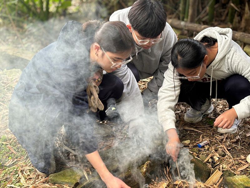 接下來,才是重頭戲!學生得學習如何辨識野菜,再親手採集、生火烹調。護理科二年級學生郭怡吟表示,前一天才下過雨,乾草、木材、竹子全都是溼的,就算好不容易點燃乾草,卻因為沒有保持木材距離、通風不良,導致熄火,沒想到,在野外,連吃頓飯都這麼辛苦!