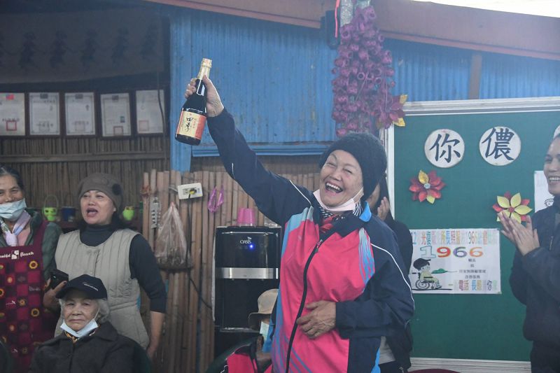 因為,現場不但有放大版的海報圖片文字,連有獎徵答的獎品也是超實用,全都是長輩最喜歡的衛生紙、沙拉油、醬油、洗碗精、菜瓜布等。就算阿公阿嬤舉手了,突然忘記答案,學生也立刻走上前,把印有答案的海報,湊到老人家面前,既拉近了彼此距離,也讓阿公阿嬤不失面子。