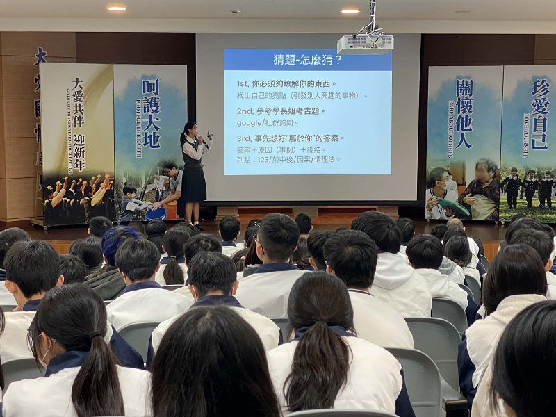 1月20日就是大學學測了,是考前十天關鍵,還是一年前是備戰是關鍵呢?當然是從高二就開始囉!慈大附中邀請到長榮航空787機隊資深總機師葉燈憲聯手慈中今年「特殊選才」考上臺灣大學金榜的洪增梅與楊采霏同學為高二學生進行一場精彩「面對關鍵,轉身起飛」的生命講座。