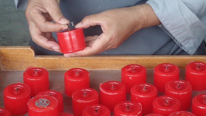 晚間,我與慈青夥伴一起向常住師父學習蠟燭加工。我們將香做成的燭芯,插入圓圓的短蠟燭中心。當燭芯插進瞬間,溫熱的燭液從半乾的蠟燭中流出,手指沾上些許燭液,感覺到一片溫熱。常住師父教我們:「燭芯要正正的插進去,代表我們做人要正直、行正道。」