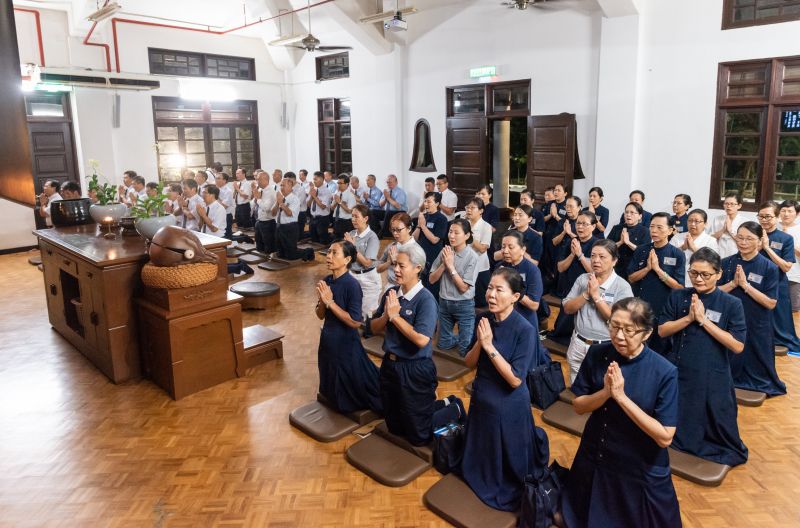 白天,我們在新講堂進行營隊課程。凌晨四點的早課,讓我不住地想打瞌睡。由於當時初學佛法的我,還不懂拜經的意義,禮拜《法華經序》的一字一拜,總讓我在拜下去時趕緊瞇個眼,渴望能夠直接倒在拜墊上睡著。