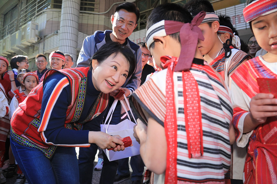 圖說2:盧市長發送小紅包及春聯給教職同仁跟小朋友,祝大家新年快樂。(記者彭勝郎攝)